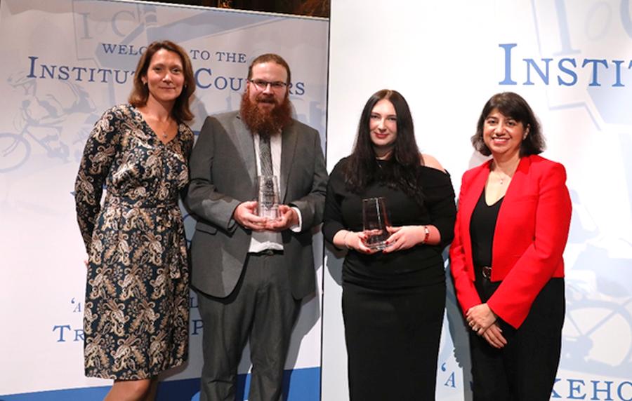 Following the apprentices. Twenty-nine individual winners in 29th year of standing ovation celebrations. Four Superheroes: Absolutely , Evri and 2 DPD. All office winners nominated for Fellowship of IOC. Step Change category win went to Evri for a four-legged robot at door with maximum access for delivery. Minister Seema Malhotra celebrating four logistics apprentice winners with West Thames College Principal Marta Gajewska. Pair of two-wheelers clocking up forty years and a half-century duo for iconic reliability for decades of delivery. Triple win for TVS in Office category and another half a century of service for Addison Lee office pair. Standing ovation for Services to Industry went to Fellow Louise O’Neil Whistl for contribution to next generation education in our sector. Govt dept win for DVSA & Cardiopulmonary theory test road safety. Driver Safety double consecutive year win for Whistl national driver project. Traffic Commissioner Sarah Bell celebrated Green win for Addison Lee for the Scootec schools green space project & Team award double – CitySprint library team and Royal Mail USO team.